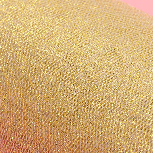 - Shimmer coating: the gold tulle is covered with plenty of glitter, giving the tulle lots of spark. Unlike other usual tulle roll, the shimmer coating gives this tulle a much more sparkling and bright look.