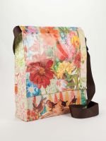 -. Feature : Carry a little flighty nature with you. / It's like wearing fresh air. By Artbird. / Inside pocket perfect for iPads, 53" adjustable strap, strong magnetic closure. / 95% post consumer recycled material. / 12" h x 11" w x 3" d