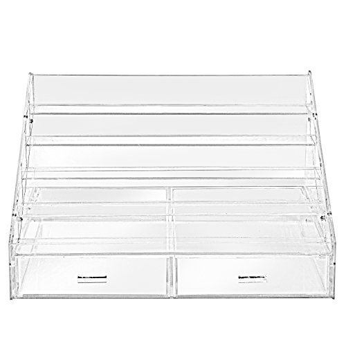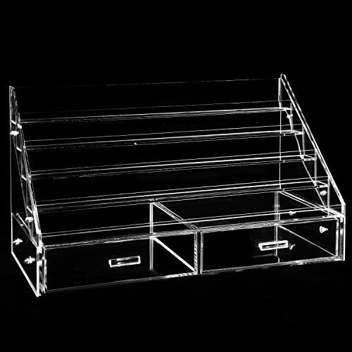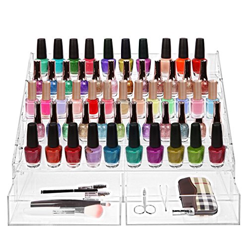 Clear Acrylic 60 Bottle Nail Polish Rack / Tabletop Cosmetic Display Stand w/ 2 Bottom Drawers