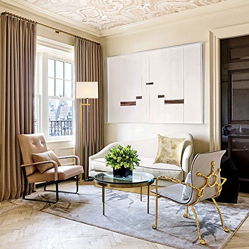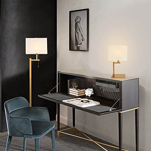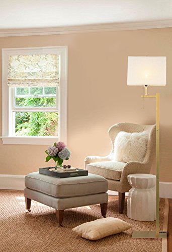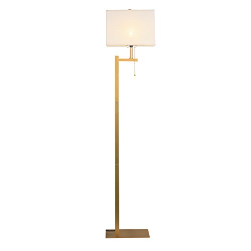 - A Floor Lamp design with strong vertical lines, a classic brass finish, and a textural cream fabric shade match for modern decors and shows off the beauty of simple designs.