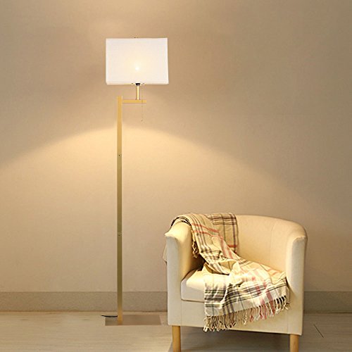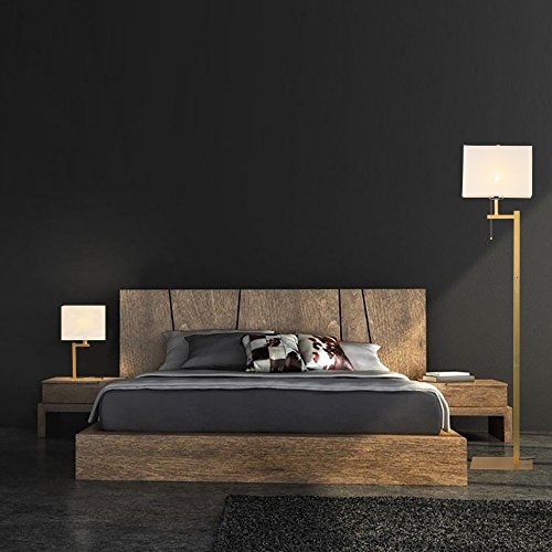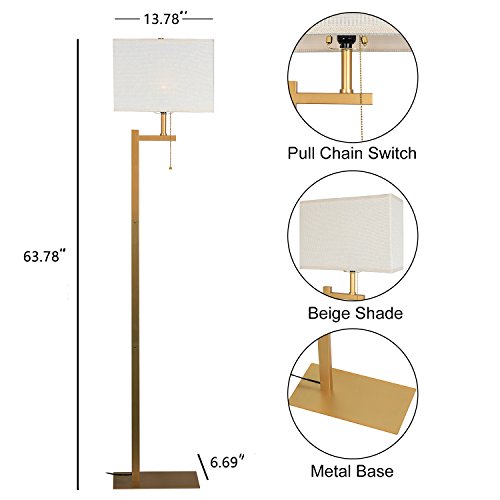 Modern Floor Lamp, Wayking Standing Lamp with Black Metal base, Cream Shade, Pull-Chain On/Off Switch--Gold