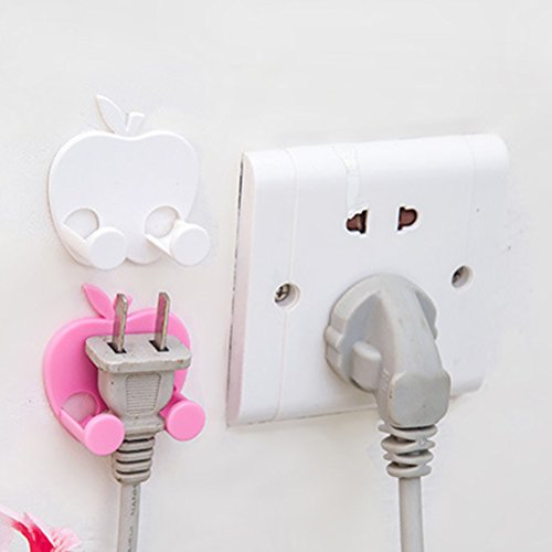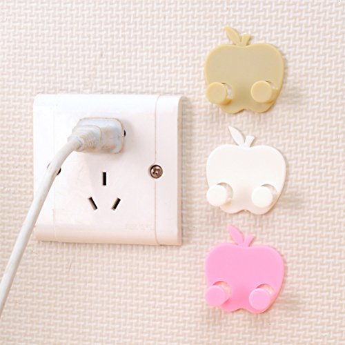 OUNONA 3pcs Multifunctional Adhesive Plug Holder Cord Organizer Apple-Shaped Socket Storage Rack Key Hanger (White)