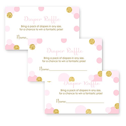 Pink & Gold Baby Shower Diaper Raffle Game Girls Invite Insert Card 25 pc.