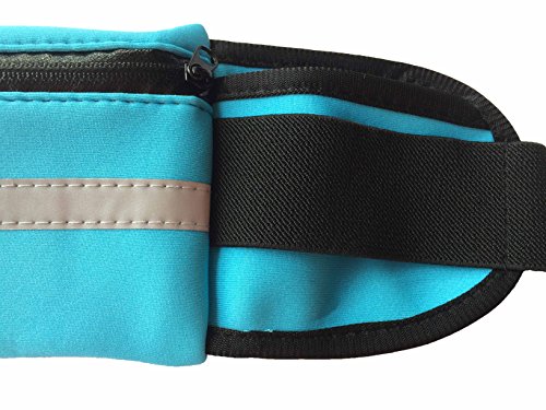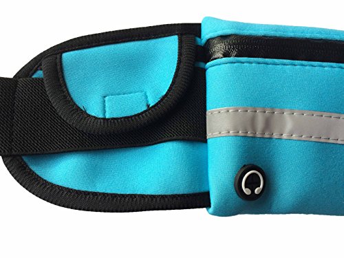 -. Feature : Changes your jogging life:It can hold all of the essential items,the multiple compartments to store your phone,driver's license, and money.the perfect way to keep your hands free / Comfortable and stays put belt:the strap does not loosen or twist,Stays in place and does not ride up while running and also has a headset outlet for convenience.Perfect belt for dog walkers and rock climbing. / Durability and water resists.Nylon/Lycra fabric water resists material ,provides extra protection and long-lasting performance / Reflective strip for night safety:Reflective material will form a visible strip on the front pocket for better activity in the morning or at night / Simple design: Size:3.74*3.8*0.78 inch the perfect size just fit you right,fit up to 6 inch cellphone Color:Blue