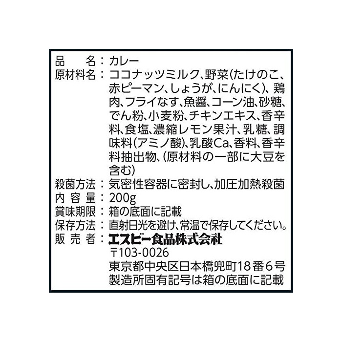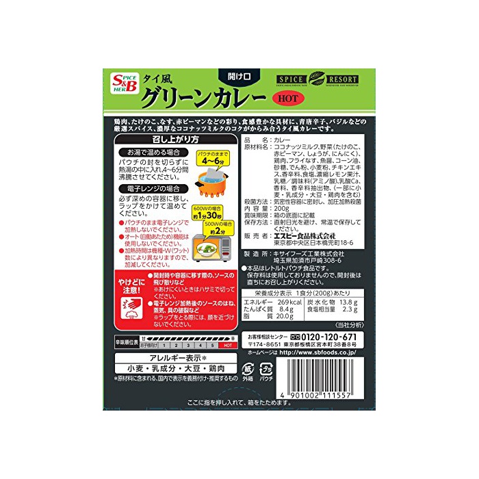 원본상품명: S&B スパイスリゾ?ト タイ風グリ?ンカレ? HOT 200g