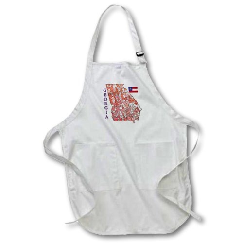 3dRose Colorful Map and Flag of Georgia with All counties Identified - Full Length Apron, 22 by 30-Inch, black, with Pockets (apr_180533_4)