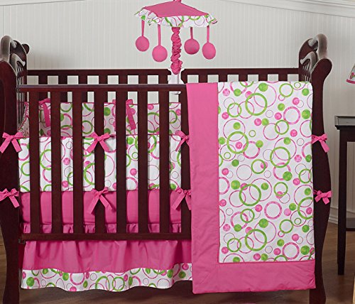 -. Title : Sweet Jojo Designs Modern Pink and Lime Green Circles Baby Girl Bedding 9pc Crib Set