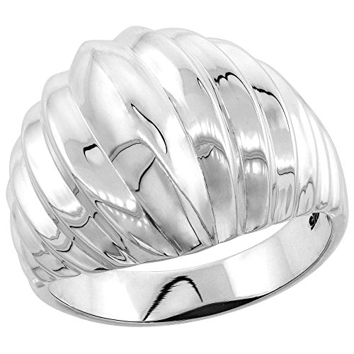 -. Title : Sterling Silver Scalloped High Dome Ring 5/8 inch wide, sizes 6 - 14
