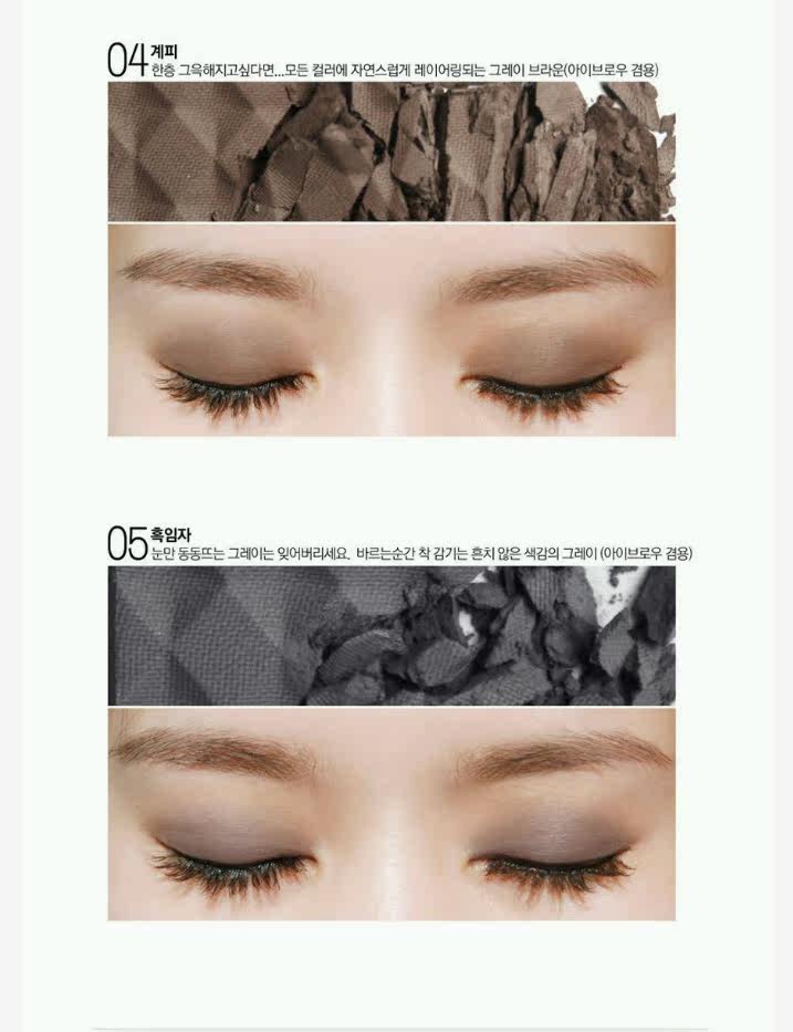 05 黑芝麻 --- 会让眼睛浮肿的妆感 把她丢掉吧!! 擦上去的瞬间可以感觉到 不是完全黑色而是有渐层效果, 可做眉粉用