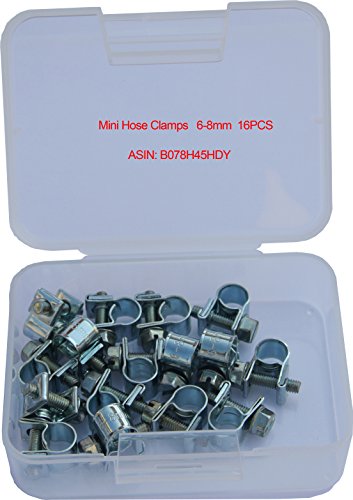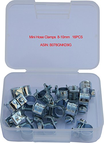 IEUYO Mini Hose Clamp, 16PCS Mini Hose Clamp For Pipe/Tube/ Cable/Line, Zinc Plated Steel, Adjustable, Diameter Range 6-8mm