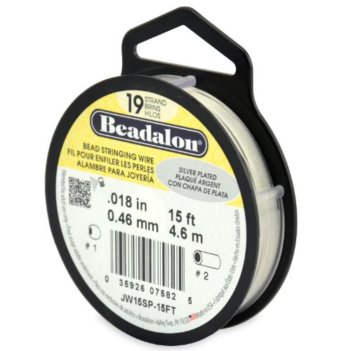 Beadalon 19-Strand Bead Stringing Wire, 0.018-Inch, Silver Plated, 15-Feet