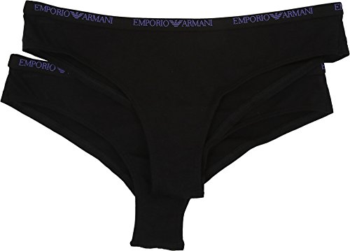 Emporio Armani Women's Stetch Cotton Couple Set Bi-Pack Brasilian Brief Black Briefs XS