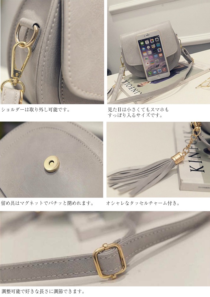 母の日、お誕生日、ホワイトデー、クリスマス、結婚記念日、入学祝い、入社祝い等のプレゼントにもおすすめです。・カラー:アイボリー / ブラック / ライトグレー / ピンク / ライトブルー・素材:レザー(合成皮革)【サイズ】横幅:約19cm高さ:約16.5cmマチ:約7.5cm重量:約300g留め具種類:マグネット・内ポケットあり・ショルダー長さ:約65cm~約122cm(調節可能・取外し可能)※合成皮革特有のにおいがする場合がござます。においが気になる場合は、一度陰干しされてからご使用ください。※ 北海道にお住まいの方:200円  沖縄県、離島にお住まいの方:700円  別途送料を頂戴いたしますのでご了承くださいませ。