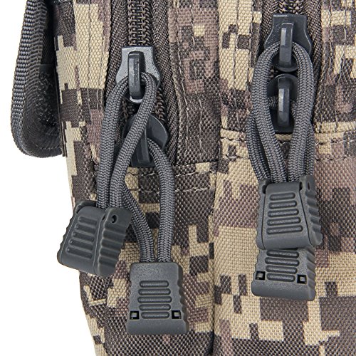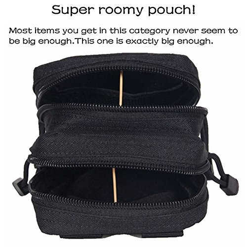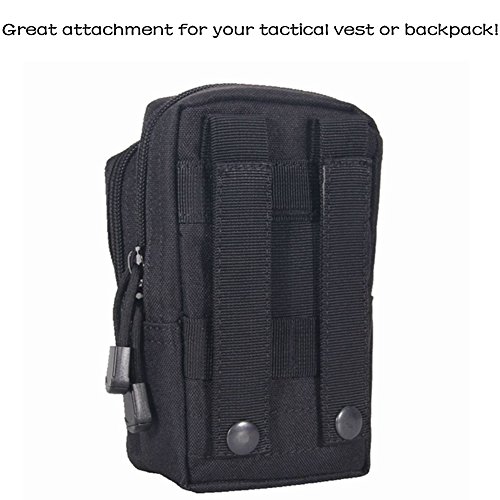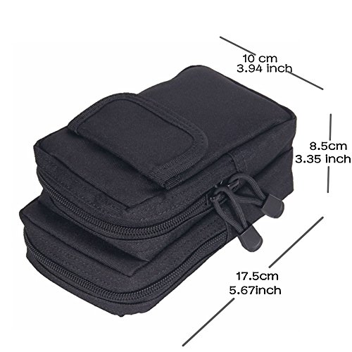 -. Feature : Multiple Compartments - With 6 compartments, the tactical pouch is very convenient to hold small items and they really do come in handy. You are able to hold your phone, cigarettes and lighter, a pen, money, a check book, credit cards, change, lip stick, and your keys in it all at one time when you are doing outside activities. / MOLLE System - Designed as a tactical molle bag with attachment straps, molle pouches is suitable for tactical belt, tactical molle vest or molle backpack, molle width can be adjustable for different width belt as belt pouch and molle utility pouch. / High Quality Zipper and Waist Clip -The tactical MOLLE pouch comes with two high quality zippered compartments to keep items safe inside like your wallet and keys. It attaches to your belt with two waist clip so that you don't have to carry it around. / Size of Tactical Pouch - It measure 5.67 inch (17.5 cm) length and 3.94 inch (10 cm) wide and 3.35 inch (8.5 cm) height. / 100% Money Back Guarantee - The high quality tactical MOLLE pouches are tested for many times. If you are not satisfied for any reason, we will replace or refund your purchase immediately. ORDER YOUR SET TODAY, RISK FREE!