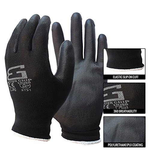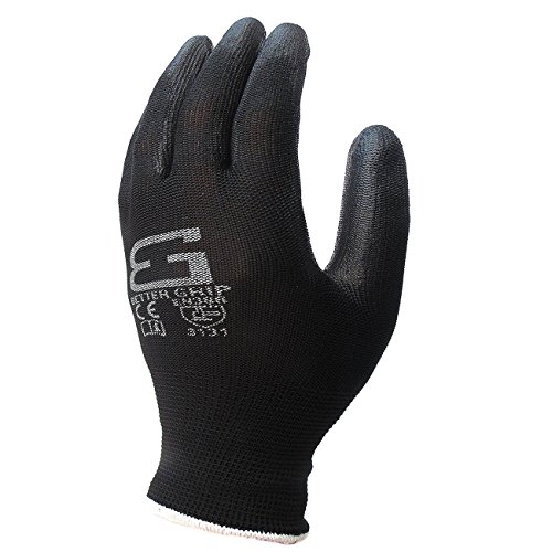 BGSPU-BK-8 Ultra-Thin Polyurethane Palm Coated Glove, Nylon/Polyester Shell, Black (Medium, 6 pairs)