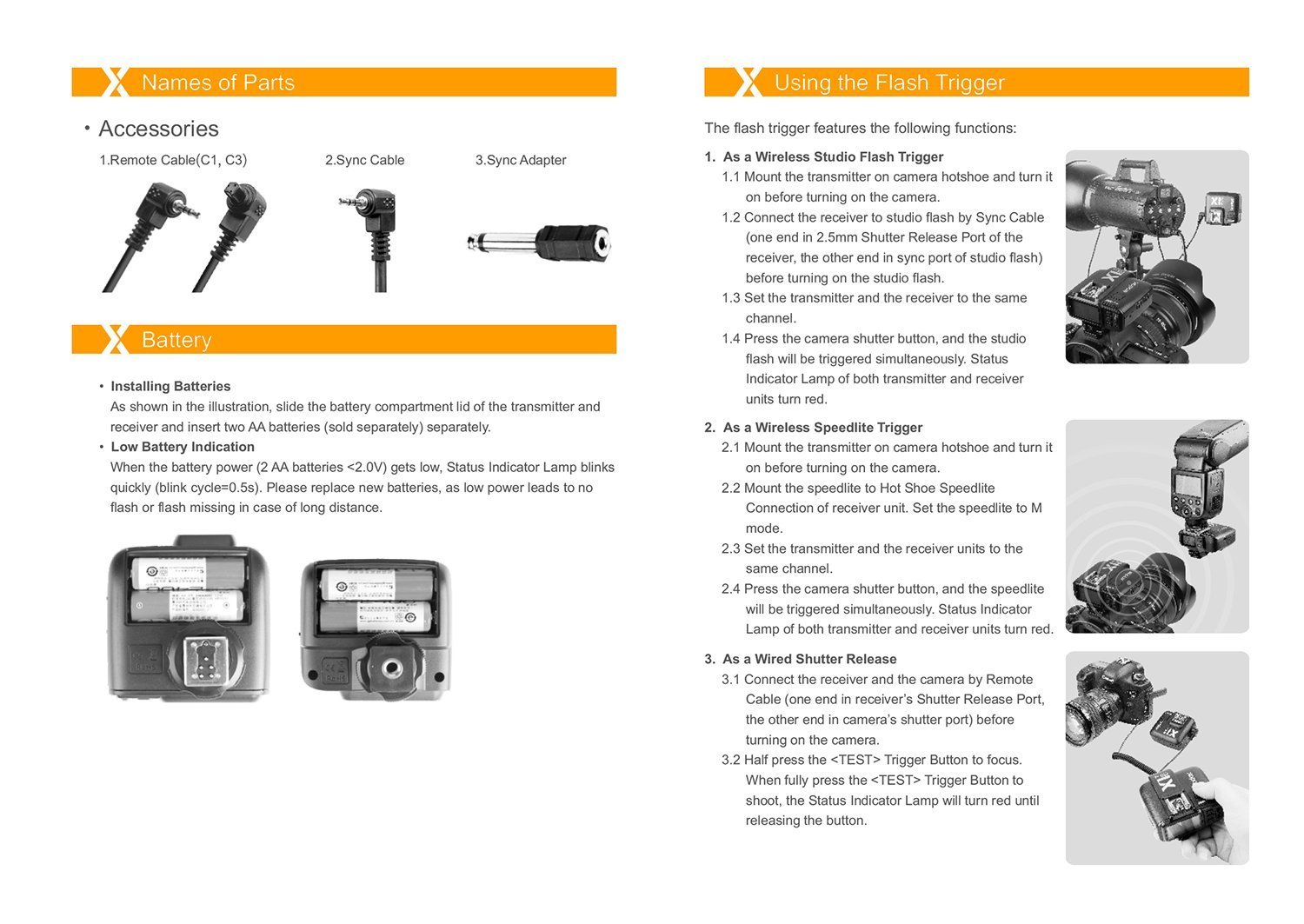 Receiver: Please use 2.5 mm sync cord for output