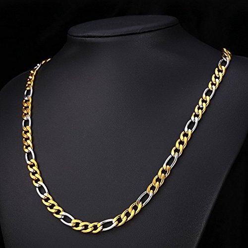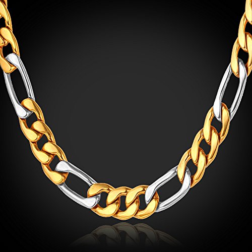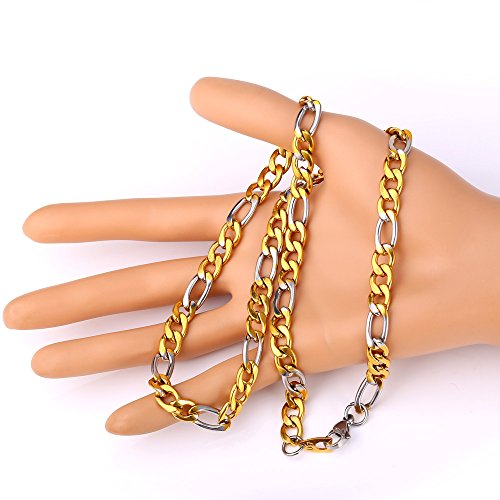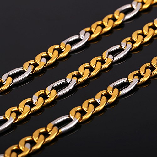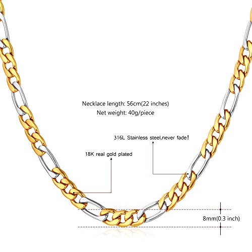 - Title : U7 New Fashion Figfaro Chain Necklace For men Romantic Gold Plated 8MM Wide 316L Stainless Steel Chain