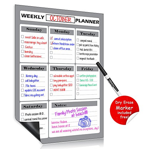 Dry Erase Weekly Calendar Planner 11x17 inch | Magnetic Refrigerator Calendar Whiteboard | To Do List , Chore Chart , Grocery Shopping List , Reminder | With Expo Dry Erase Markers