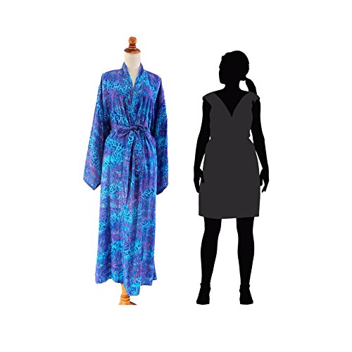 About this item: Swirling shades of blue, violet and indigo evoke a mysterious underwater world. Painted by hand, they grace this long batik robe by Desak Nyoman Parwati. As beautiful as it is comfortable, its flattering front-wrap style, wide sleeves and matching belt make this robe a favorite. Because the fabric is painted by hand, motifs and color distribution can vary slightly. - One size fits most