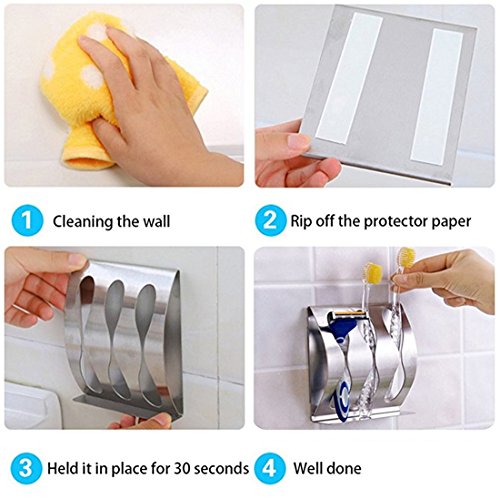 - ❹Multi-purpose, keep your bathroom tidy and clean with this stainless steel toothbrush holder. Can hold toothbrushes and razor and any accessories.