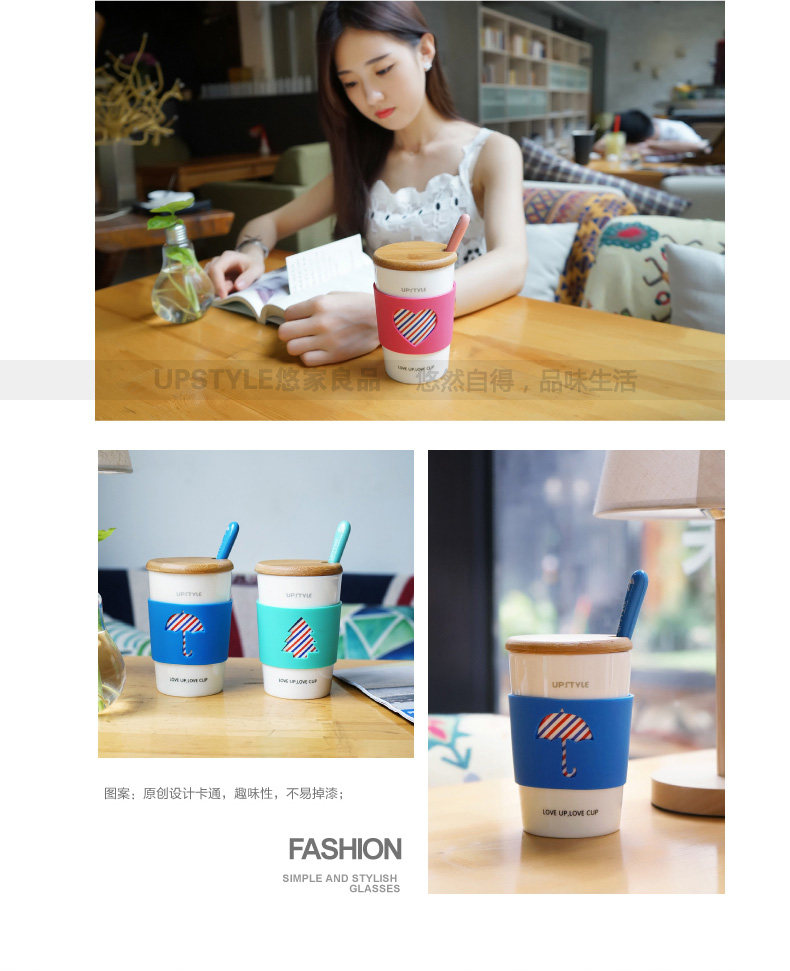简约创意马克杯带盖勺陶瓷杯个性情侣水杯牛奶咖啡杯子