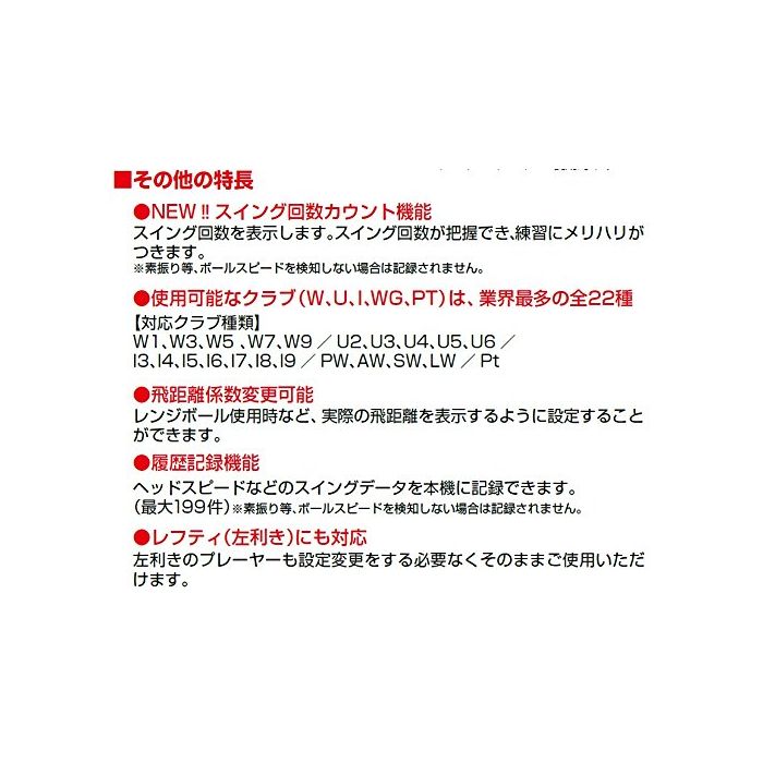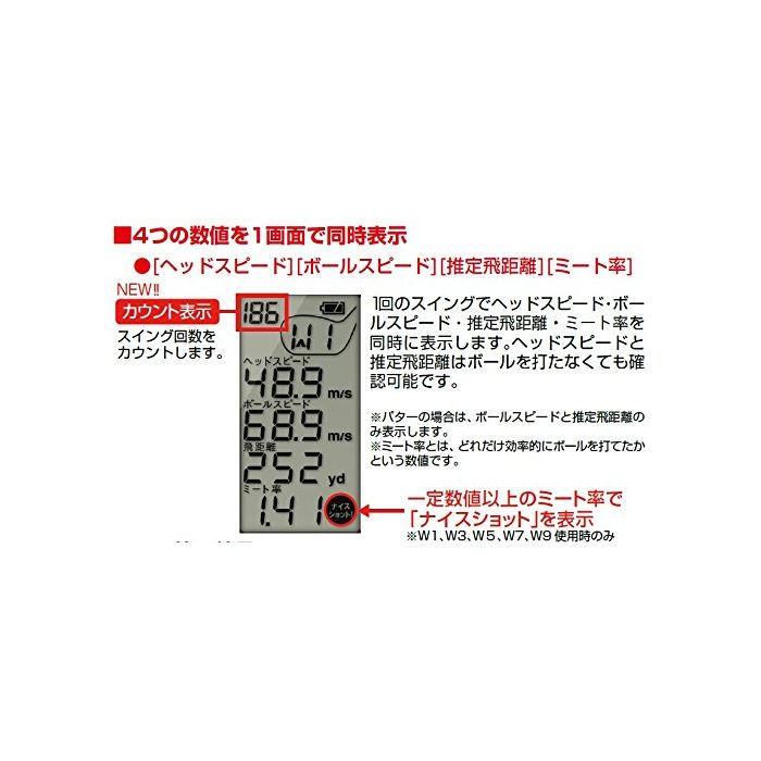 볼 스피드 표시 범위:15.0m/s~99.9m/s(미터/초)※퍼터0.5~15.0m/s(미터/초)