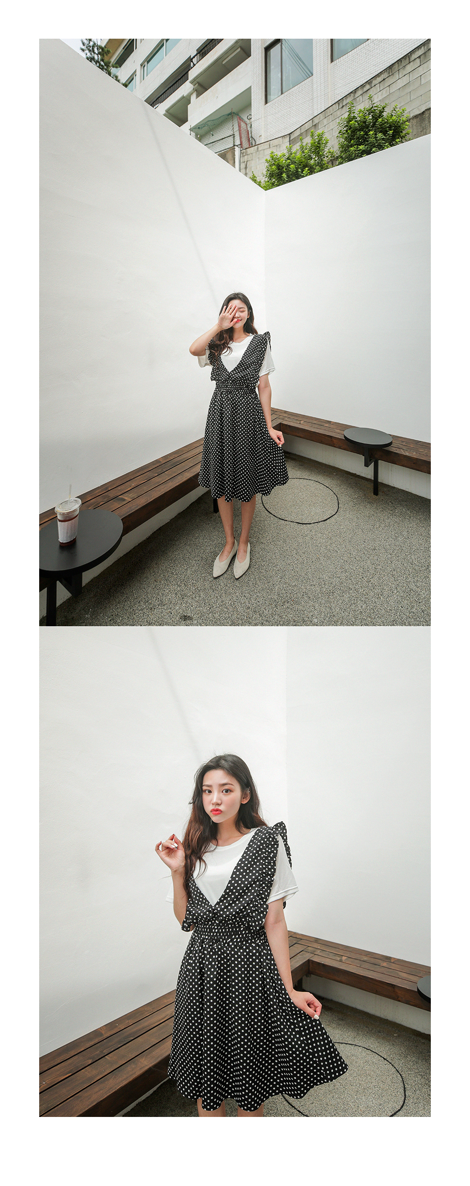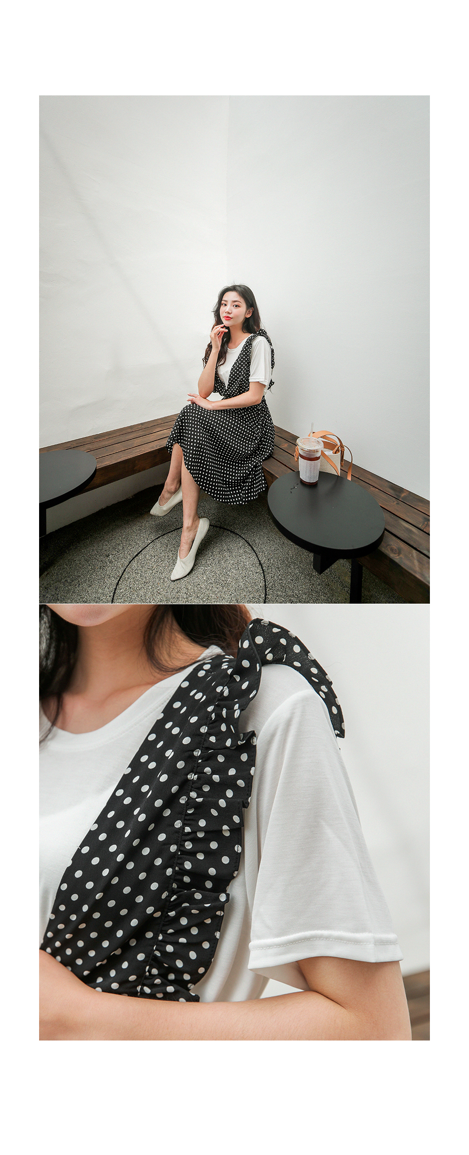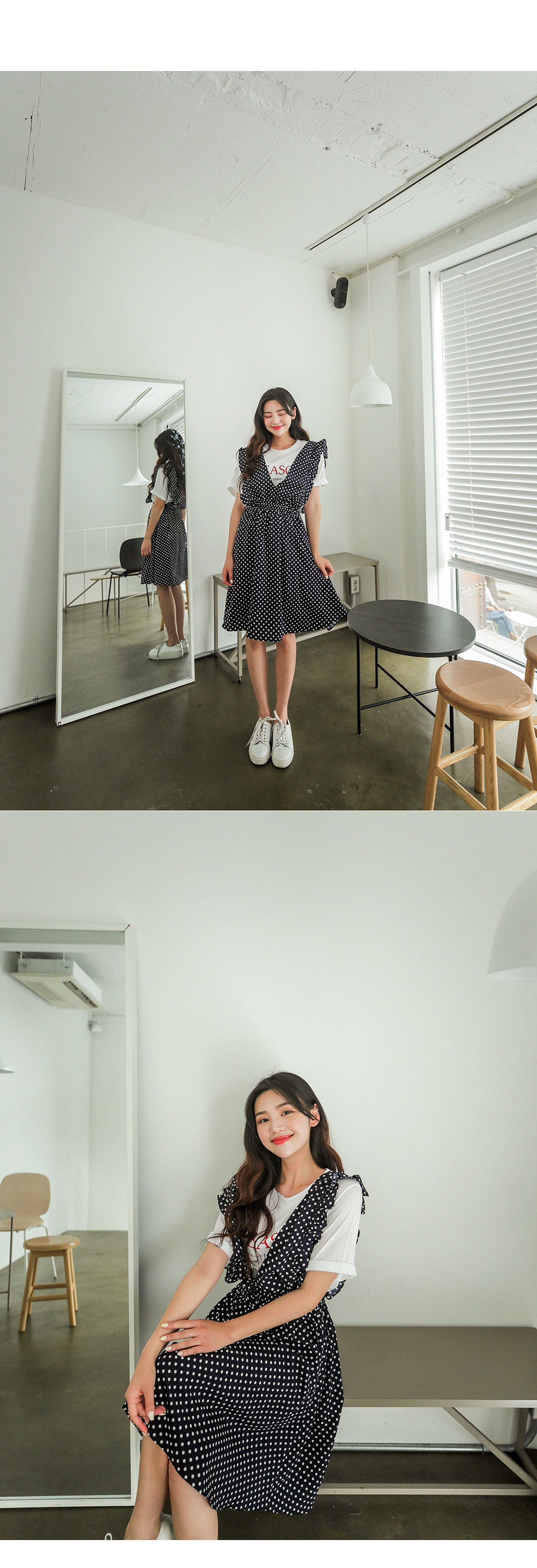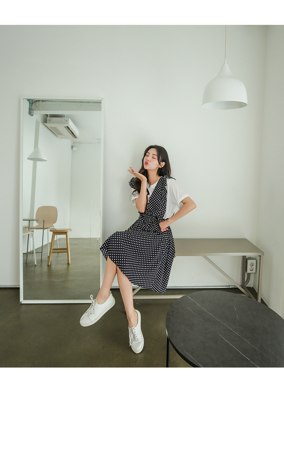 ベーシックなTシャツとぴったり!コーディネートする最適なドットワンピース!