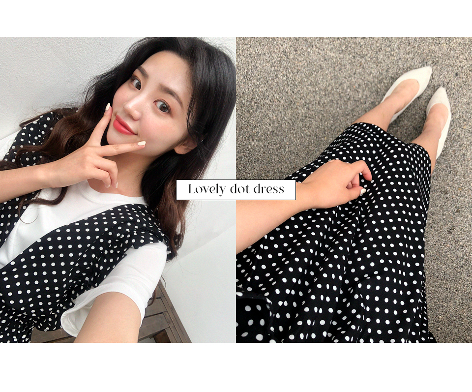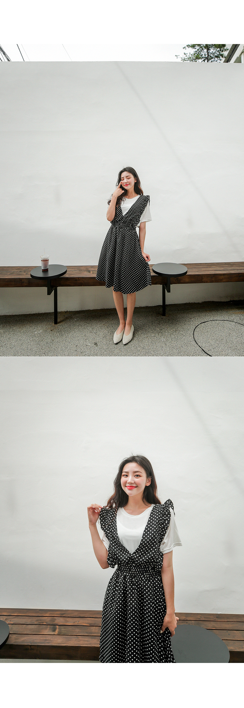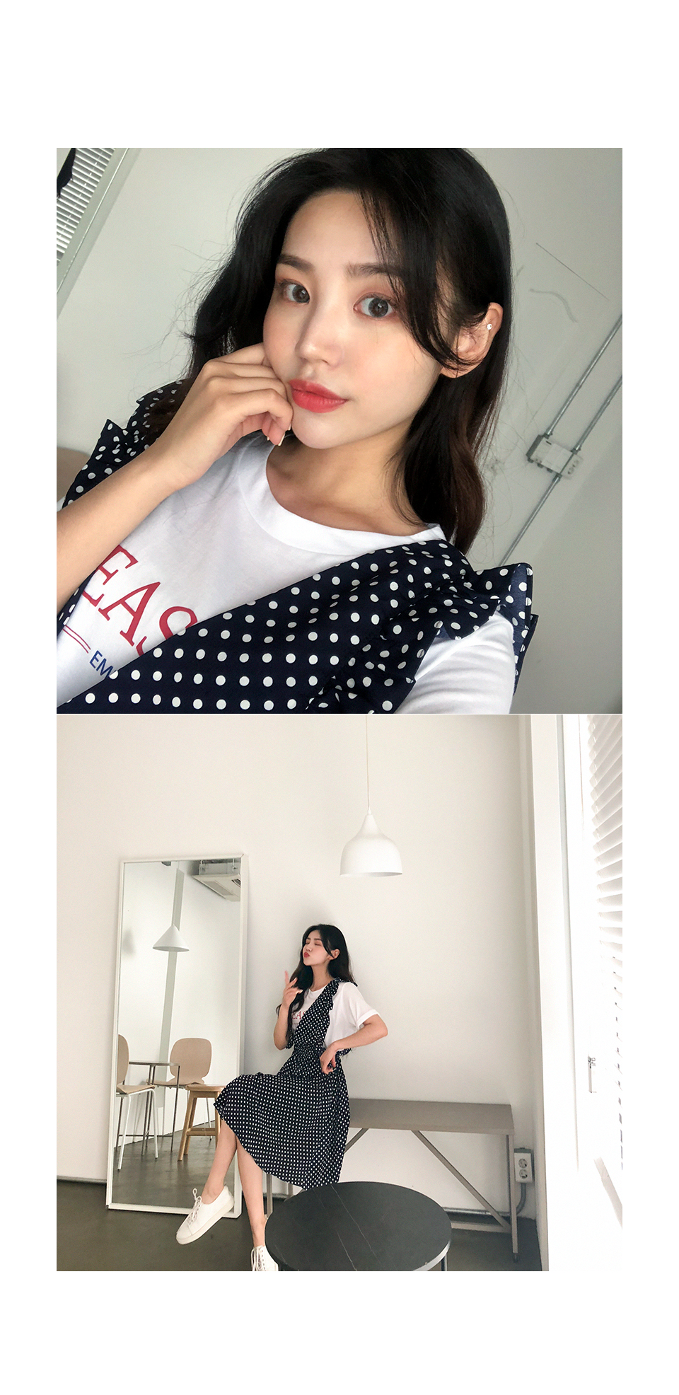 ベーシックなTシャツとぴったり!コーディネートする最適なドットワンピース!