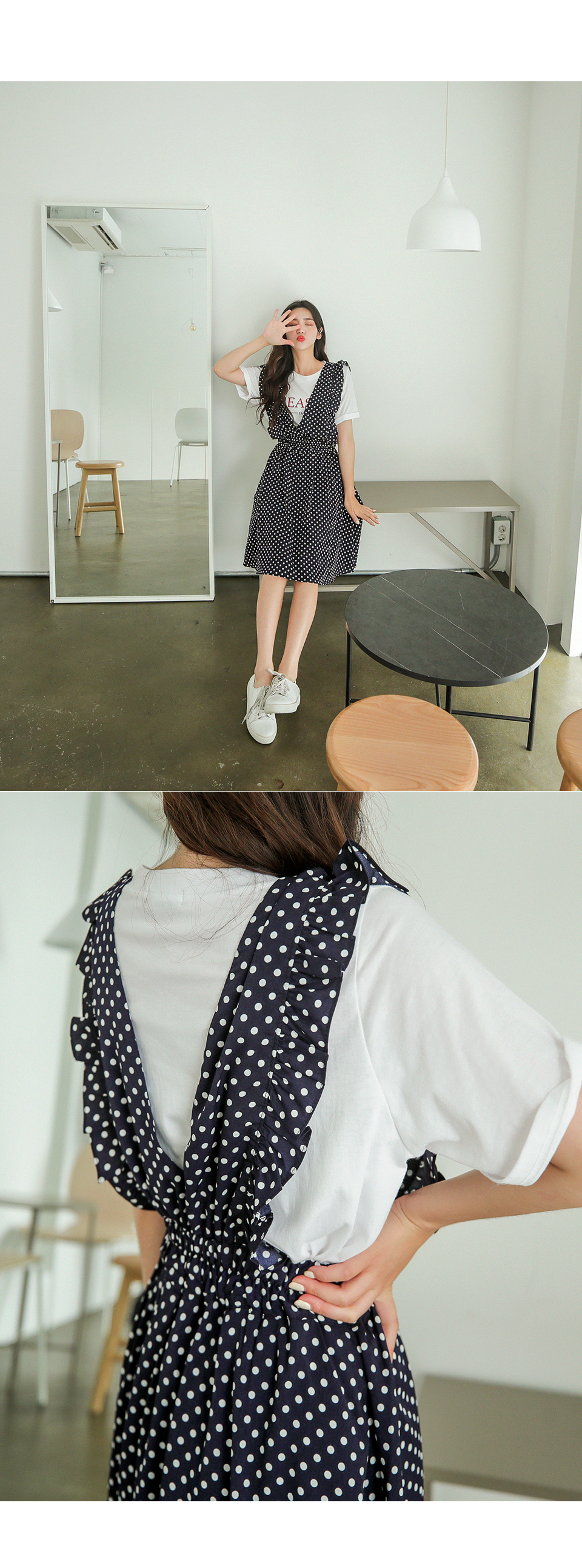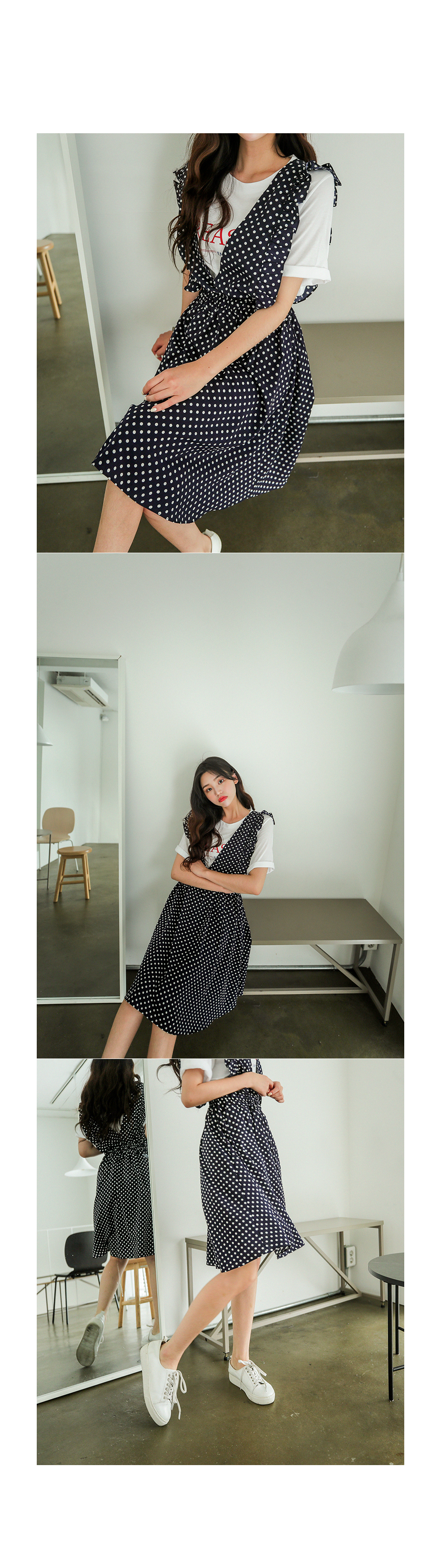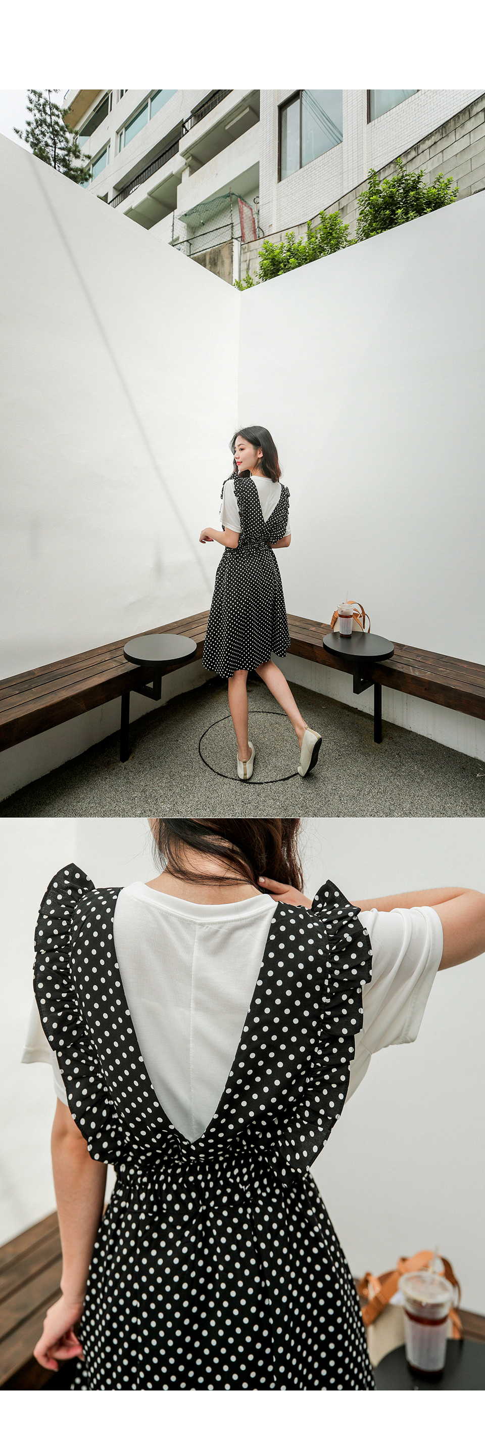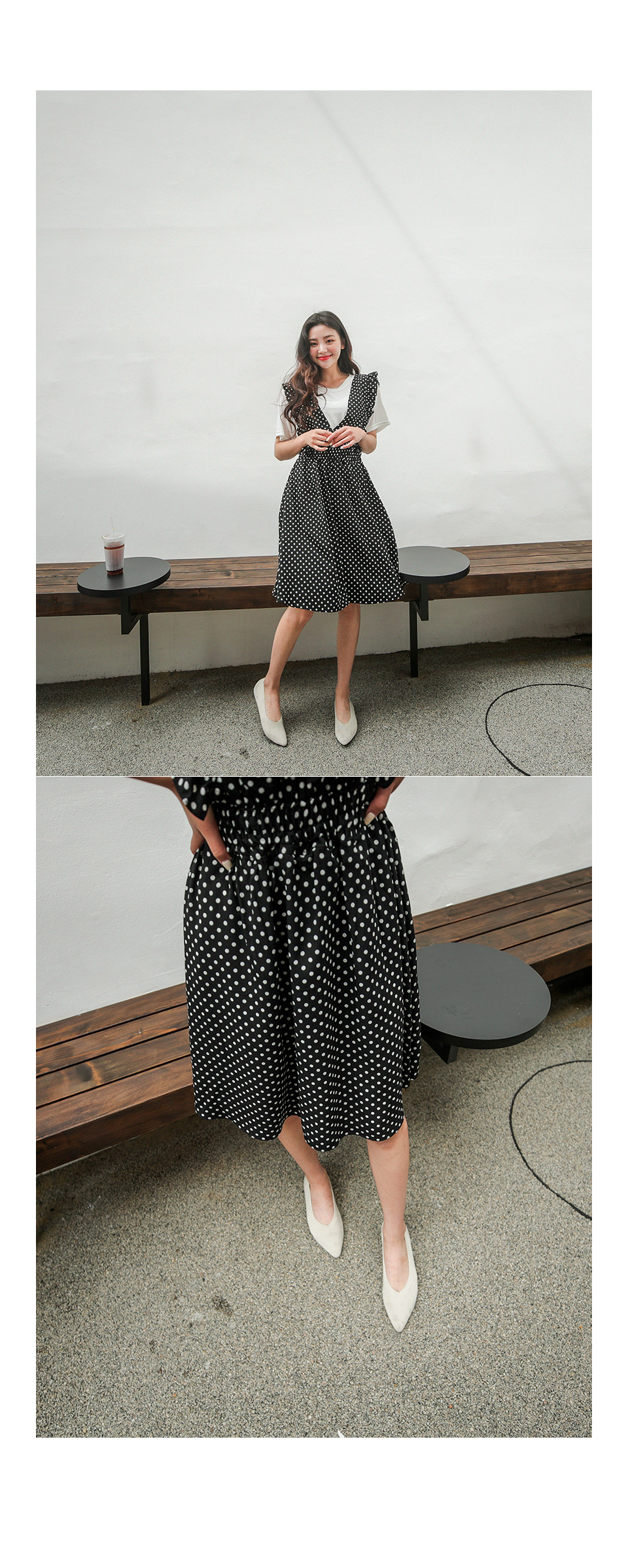 ベーシックなTシャツとぴったり!コーディネートする最適なドットワンピース!