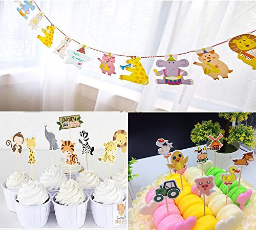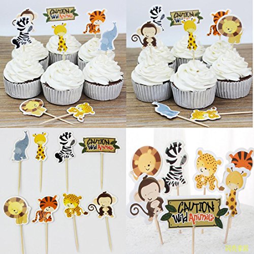 (set of 49)48Pcs Animals Cupcake Muffin Topper Picks Cake Decoration Baby Shower Birthday Party Favors +1 Pcs Zoo Animal theme party flag Wild Animals Zoo Zebra Lion Tiger Elephant Giraffe Baby