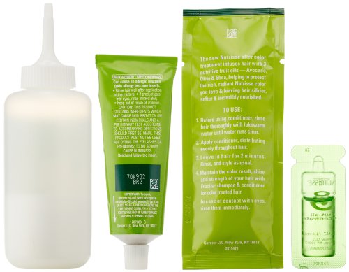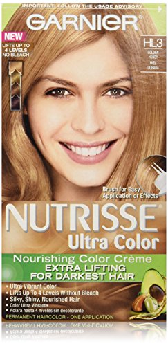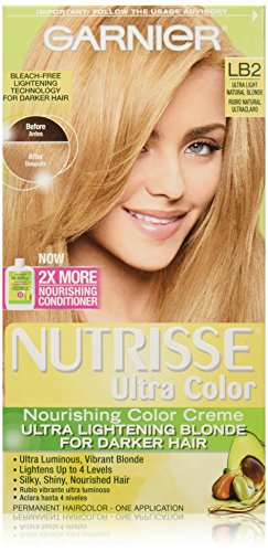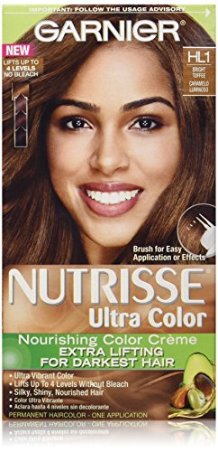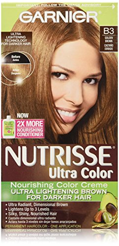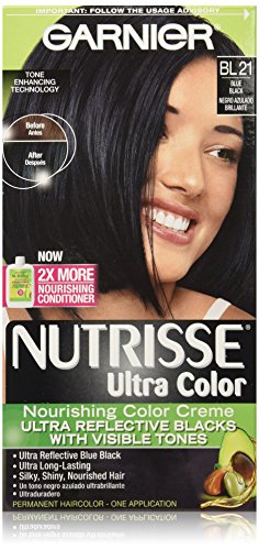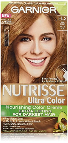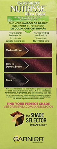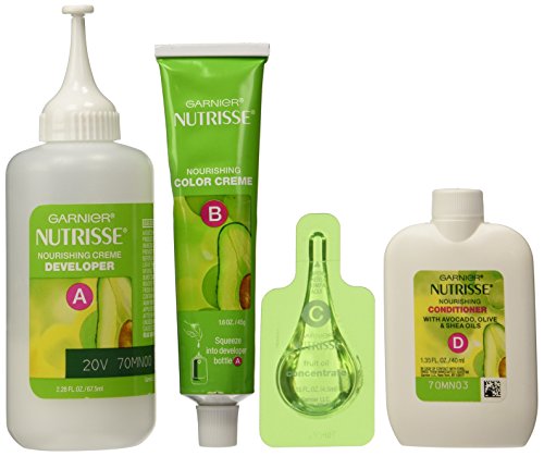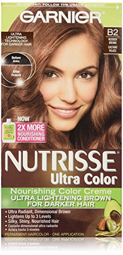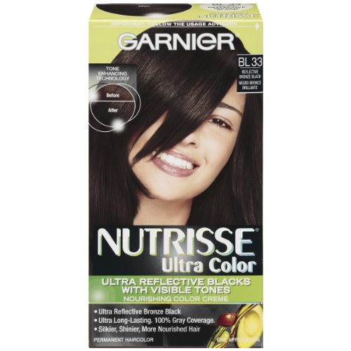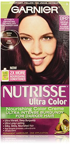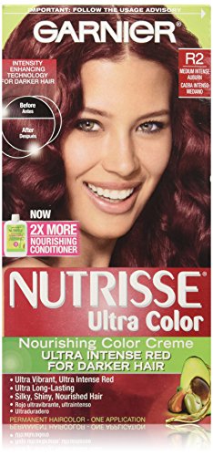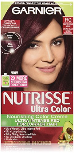 Garnier Nutrisse ultra color nourishing color creme series transforms naturally dark hair with ultra reflective tones. Choose from the 5 ultra color shade families: Ultra light blondes take dark brunettes to blonde without bleach, ultra Intense reds offer intense, vibrant red tones for darker hair, ultra lightening browns lift dark hair up to four shades lighter without the brassiness, and ultra reflective blacks transform even the darkest hair with visibly reflective, shiny tones. Ultra color nourishing color creme comes with an ampoule of grape-seed oil to start nourishing hair while you color. The non-drip formula spreads easily and smells great and the after-color conditioner is infused with 3 fruit oils, avocado, olive and shea for silkier, shinier, more nourished hair.Feature