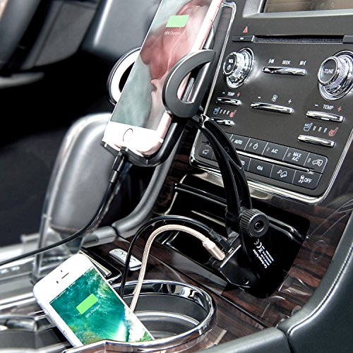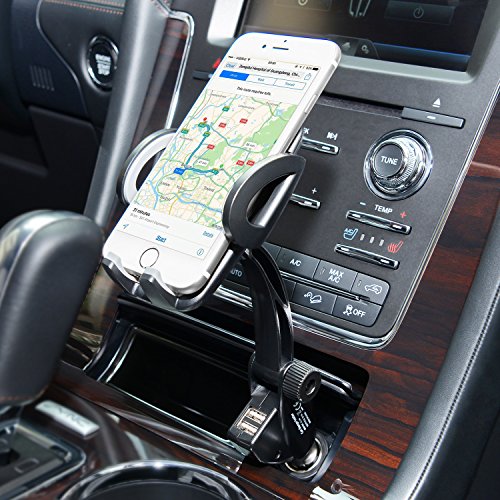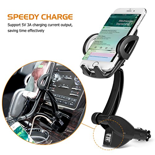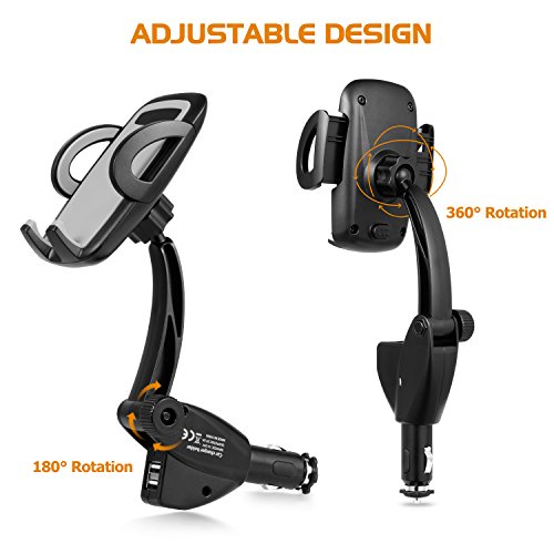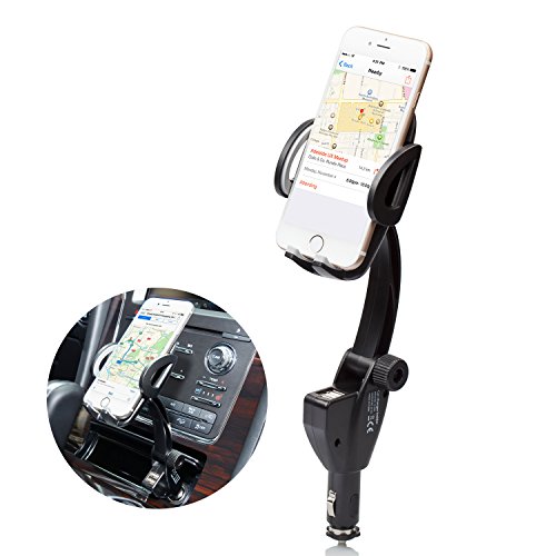 Ucharm Phone Car Mount Holder, 3-in1 Cigarette Lighter Car Mount Charger with Dual USB Ports Adjustable Goose-neck for iPhone 8/8 Plus/7/7 Plus/6, Samsung Galaxy S8/ S7 Edge and More Smartphones
