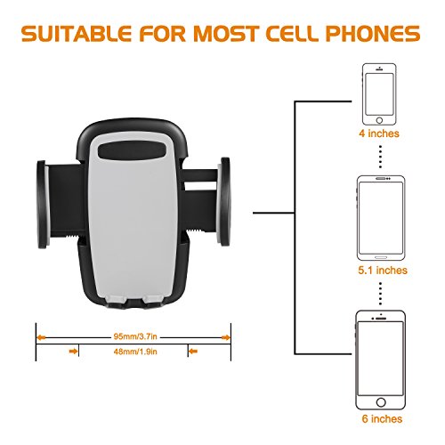 Stretchable Clamp: The clamp can be stretched from 1.9in to 3.7in, which is compatible with most of GPS and smart phones such as iPhone, Samsung, Huawei, Sony, Nokia, Nexus and so on.