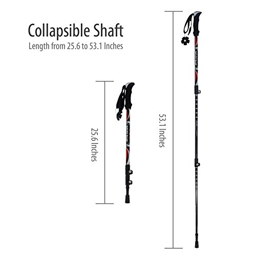 COLLAPSIBLE SHAFT: 3 collapsible sections make the length of trekking pole from 25.6 inches to 53.1 inches. You can adjust the length to an ideal height according to the tick marked on the shaft. Compact enough to be put in your backpack.