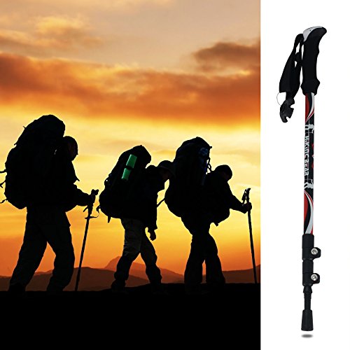 LIGHT AND STRONG MATERIAL: The shaft of this walking stick is made of CARBON FIBER which is lighter and stronger, compared with Aluminum Poles. Each weighs only 8.1 oz while offers great support. Save much of your energy.