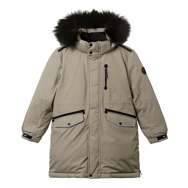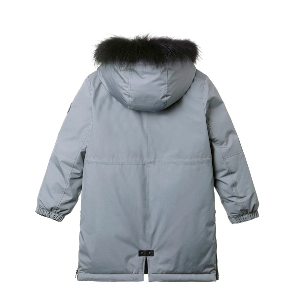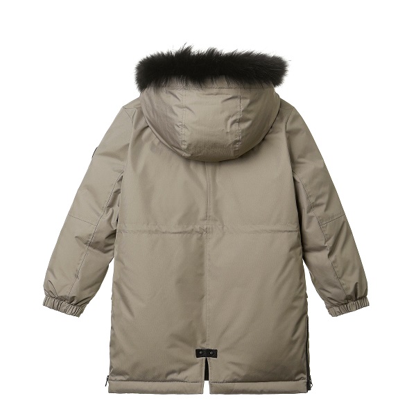구스 90:10 /블랙 라쿤 2.5cm블랙 라쿤 퍼의 남아용 야상형 다운티타늄 메쉬 발열 안감 및 소매 이너커프스 적용하여 보온성을 높임밑단 사이드 지퍼가 있어 편하게 움직일 수 있고 다양한 야외 활동에도 용이한 아이템소매부분에 벨크로 처리로 사이즈 조절 및 활동성 높임키즈의 안정성 고려하여 부드러운 타입의 벨크로 사용함