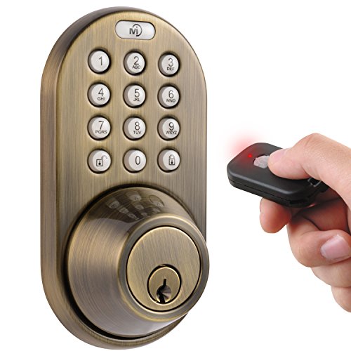-. Title : MiLocks QF-02AQ Keyless Entry Deadbolt Door Lock with Electronic Digital Keypad and RF Remote Control, Antique Brass