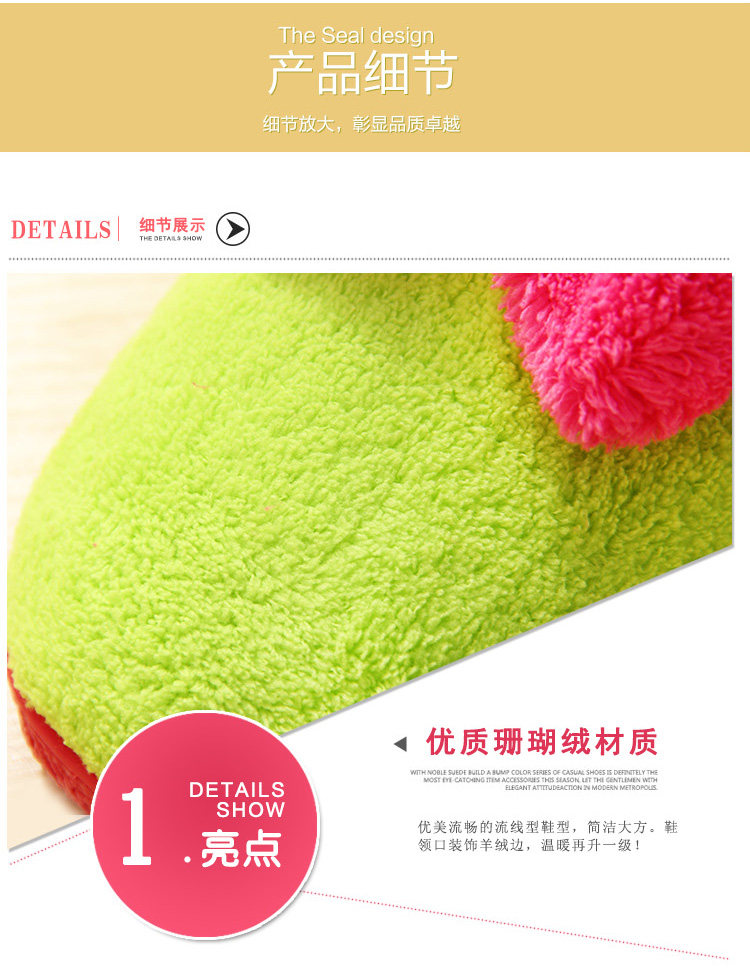 材质:鞋面珊瑚绒材质,鞋底PVC大底