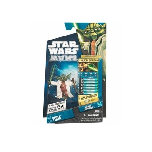 -. Feature : Star Wars: The Clone Wars 3 3/4" animated action figure from Hasbro / Yoda is figure # CW05 in the 2010 Clone Wars action figure line / Figure comes with a lightsaber, Galactic Battle Game card, die and base / For Ages 4 & Up