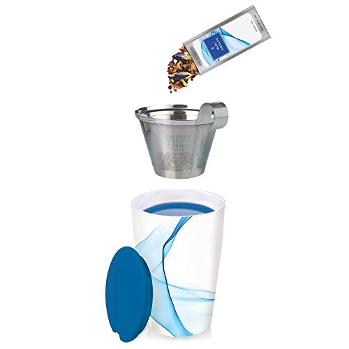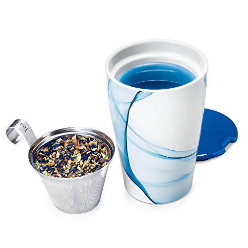 Studio : Tea Forte Publisher : Tea Forte Product Description Loose tea by the cup.....simple.?Our double-wall ceramic tumbler and integrated, IMPROVED stainless steel infuser make steeping loose tea by the cup simple. The innovative double-wall construction keeps tea hot and the tumbler cozy to hold. Steeps a generous 12 oz. cup and lid are microwave dishwasher safe. 0