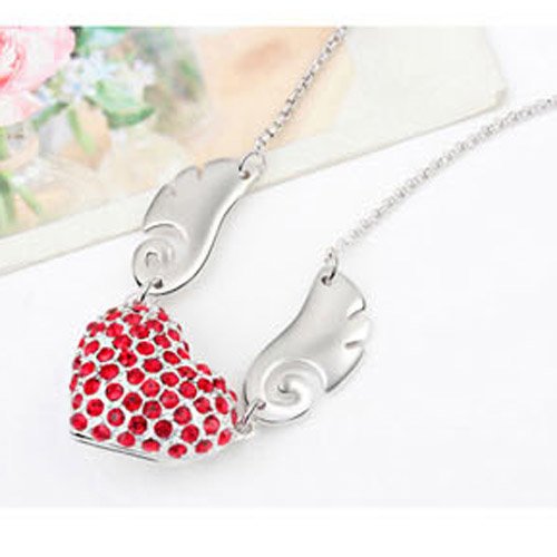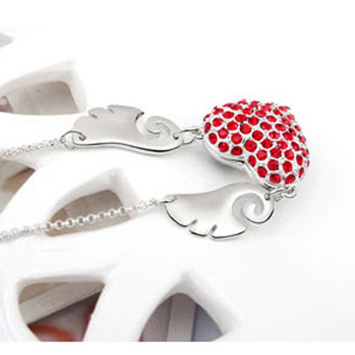 -. Title : Sojewe Silver tone Angel Wing Heart Pendant Necklace Red Swarovski Elements Crystal 18" Chain for Women