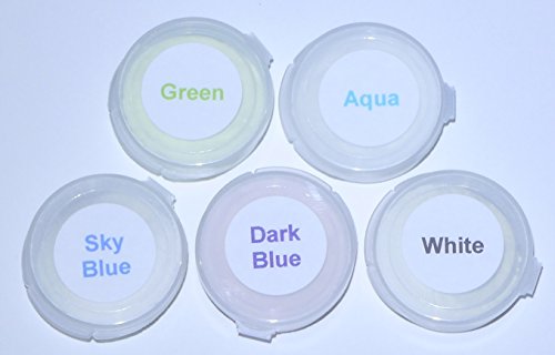 - Neutral Green, Aqua, Sky Blue, Dark Blue, and White glow powder from Art ‘N Glow, the premier glow in the dark supplier for fine arts, crafts, and DIY projects.