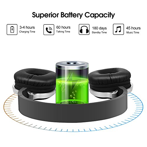 With built-in high-quality rechargeable Li-ion battery provide roughly 45 hours of music play,60 hours of phone call,180days standby time.(Battery performance varies with correct using and maintenance.)