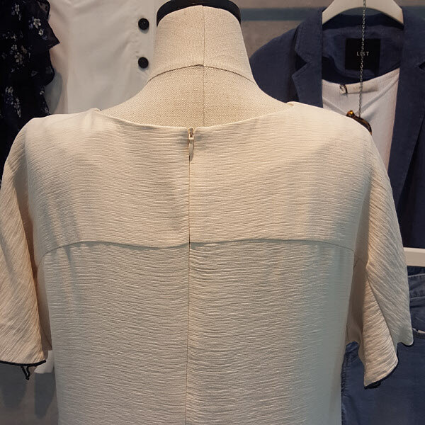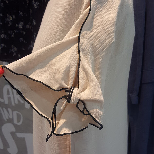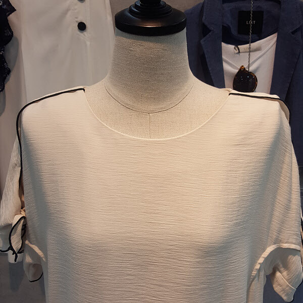 심플한 라운드의 소매리본포인트가 여성스러운 원피스입니다