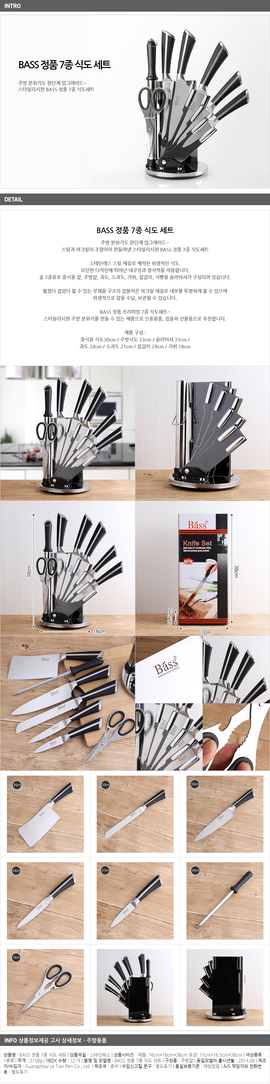 Stores seven sets of genuine esophagus storage Stainless knife BASS