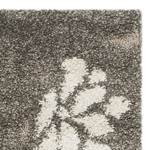 Soften your decor with this plush and elegant floral Florida Shag rug from Safavieh. The stems and leaves that comprise this floral motif have a lower pile height to create a multidimensional effect. The base color of this rug is a smoky greyish brown color and the focal flowers are beige.