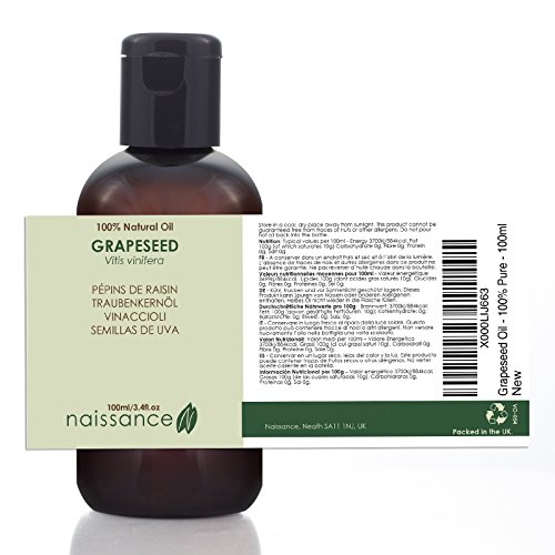 -. Title : Naissance Grapeseed Oil 3.4 Fl. oz. 100% Pure Cold Pressed, Hypoallergenic & Suitable for Sensitive Skin.