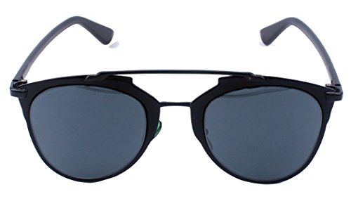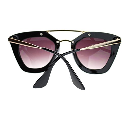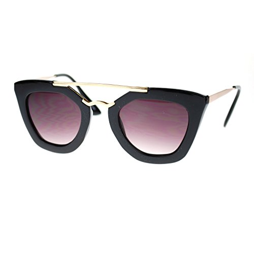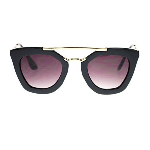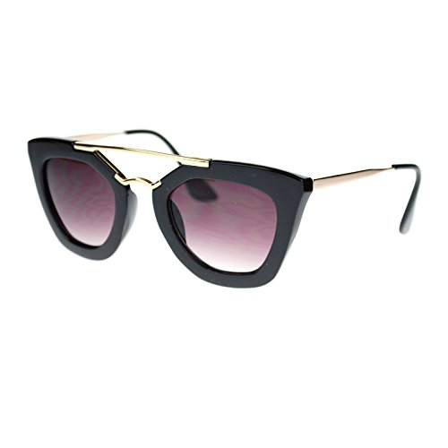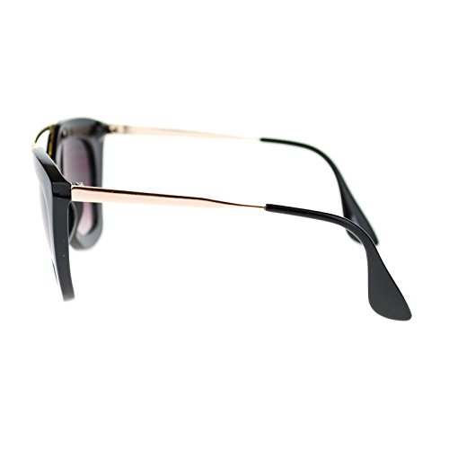 Womens Squared Double Metal Bridge Thick Plastic Cat Eye Sunglasses Black