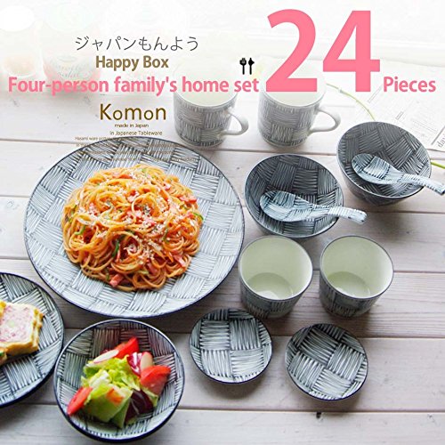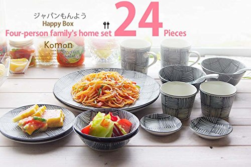 원본상품명: 和食器 ジャパンもんよう komon いちまつ 市松 24個 福袋 2人家族のホ?ムセット おうち うつわ 食器 陶器 美濃?