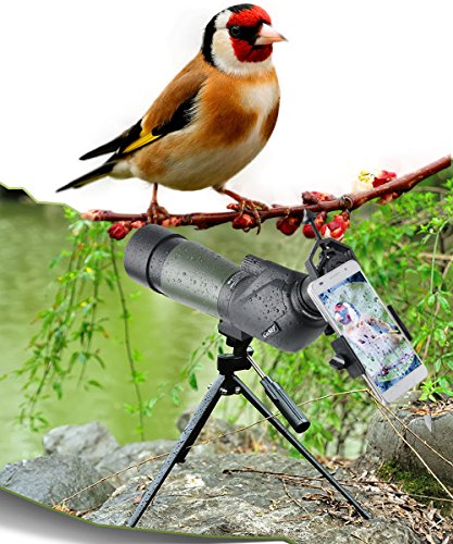 Comes with a digiscoping cell phone adapter - which enables you to take videos and images in the distant world. Explore the nature of the world easily through your screen. With Carrying Case, Eyepiece and Lens Protection Covers, Cleaning Cloth and handy Straps.